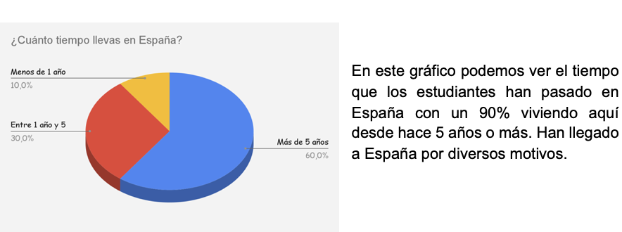 Dans ce graphique, nous pouvons voir le temps que les étudiants étrangers ont passé en Espagne,